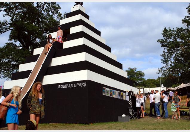 I was lucky enough to stumble across one of their installations at a UK festival in 2010. The boys constructed the ‘Ziggurat of Flavour’ at the Big Chill Festival, consisting of a giant black and white pyramid filled with a heady mist of breathable fruit. You literally inhaled the thick orange cloud made from pulverised oranges and lemons. An airborne shot of Vitamin C if you like. Once you’d walked upwards through the labyrinth of vaporised fruit you would take the slide from the top back down to the ground.