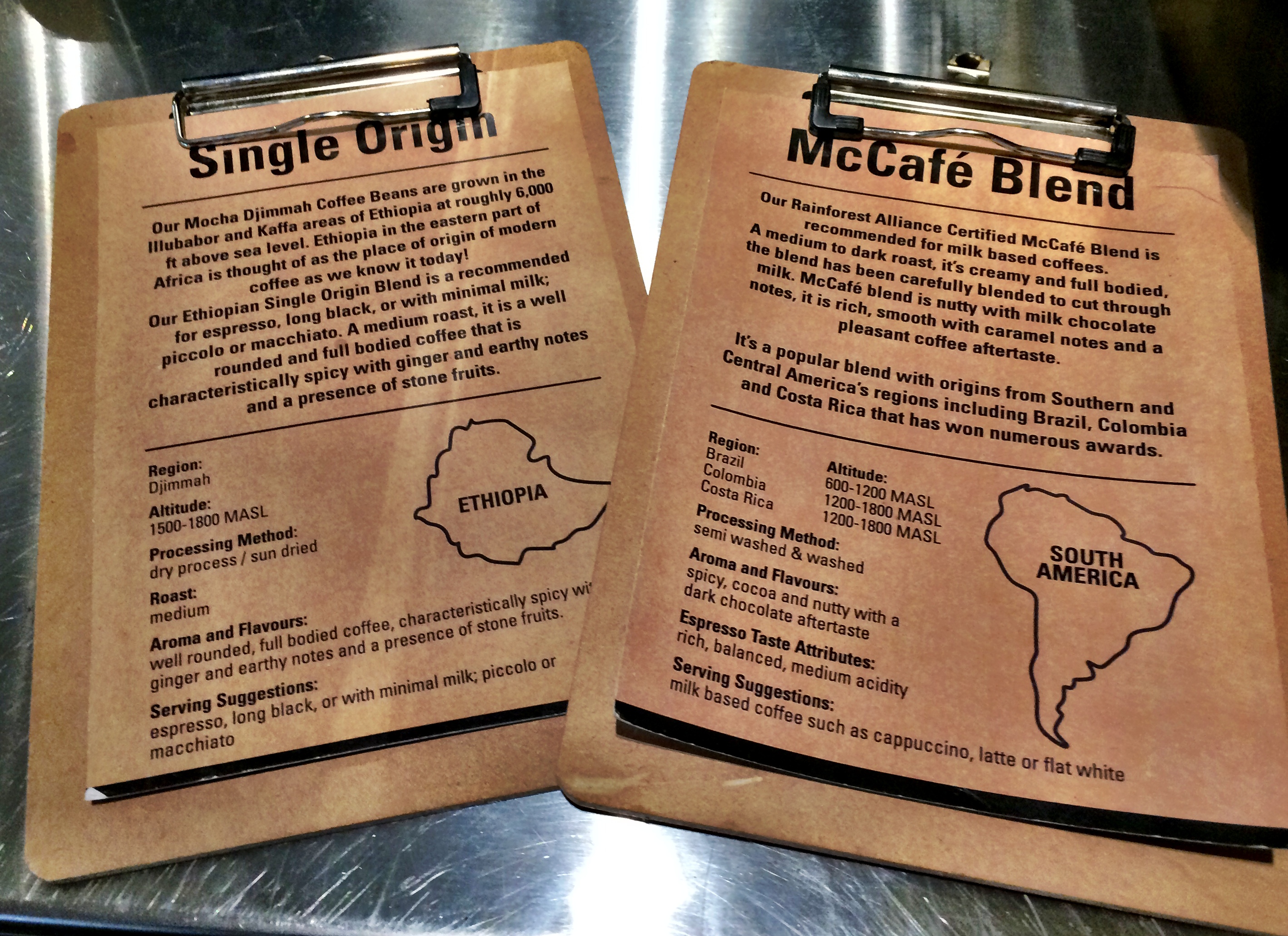 The McDonald’s branding is so slight that if you blink, you’ll miss it. There’s just a small McCafé logo under the main entry sign and a few references in the menus. Although I think most people would recognise the distinctive light brown tiles in the kitchen (didn’t everyone take a tour of the kitchen during a McDonald’s children’s birthday party at some stage?).