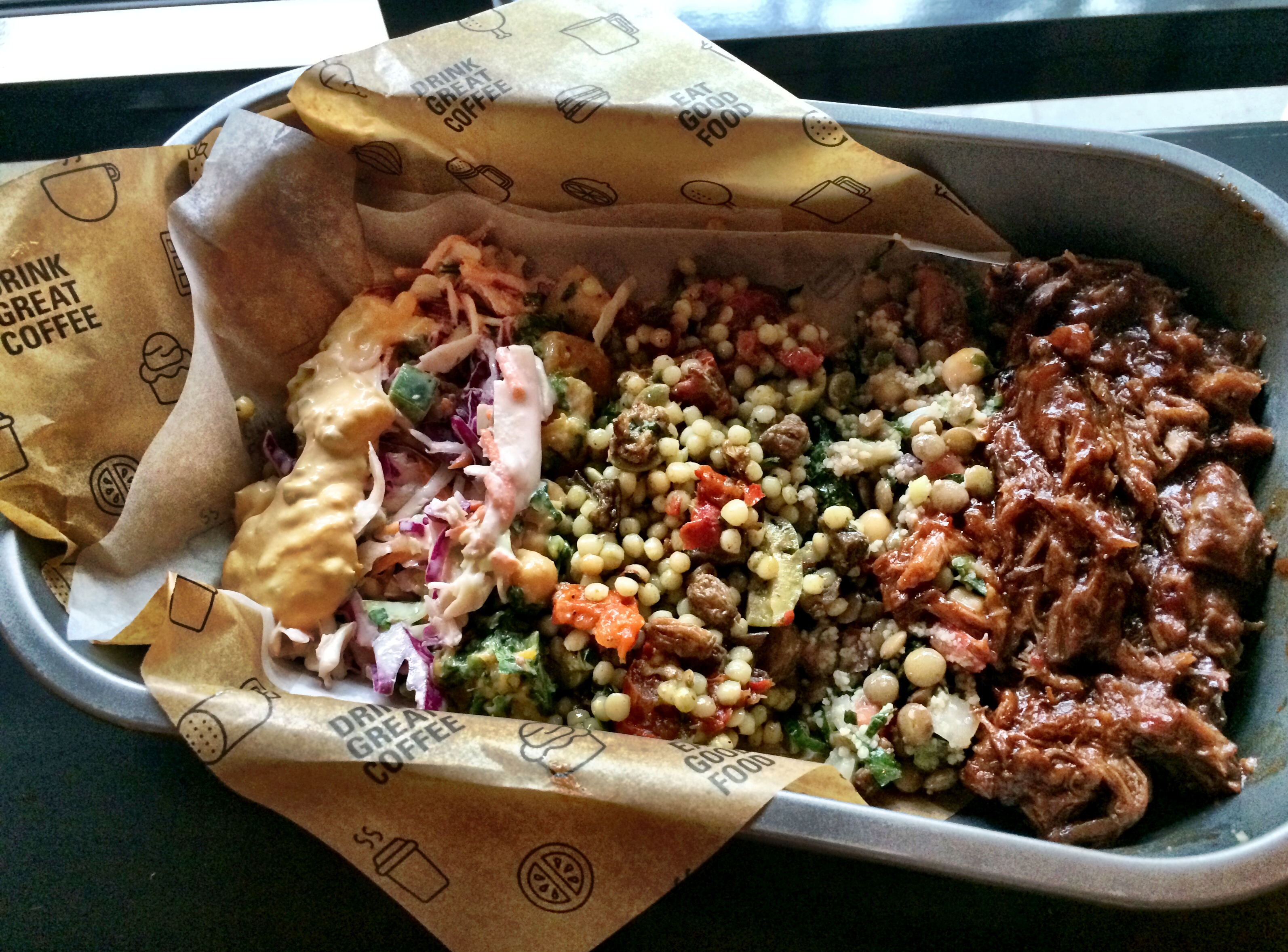 I went for a mix of salads including kale, pumpkin and tahini; Lebanese lentil; and roasted eggplant and pearl couscous. To this I added chipotle pulled beef which had been slow-cooked in a smoky barbeque-style sauce. There were half a dozen sauces to choose from to finish it all off and I somehow found myself ordering the Big Mac sauce, despite knowing full well it’s just a reversioning of thousand island dressing.