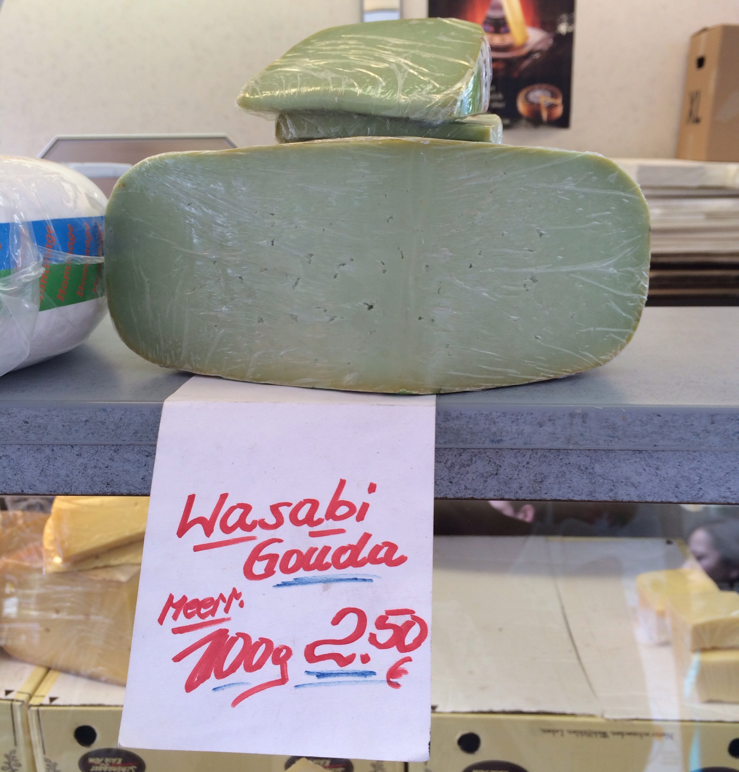Now here’s a cheese that literally stopped me in my tracks due to its bright pop of green. Gouda was already top of mind when I discovered this at the Turkish markets in Berlin’s Kreuzberg because I’d just learnt the proper way to pronounce it – ‘how-da’, rather than the brash ‘gou-dar’ that I’d heard from Aussies all my life. Adding wasabi to anything can be a risky move but judging by how quickly these wedges were disappearing I’d say it was working out.
