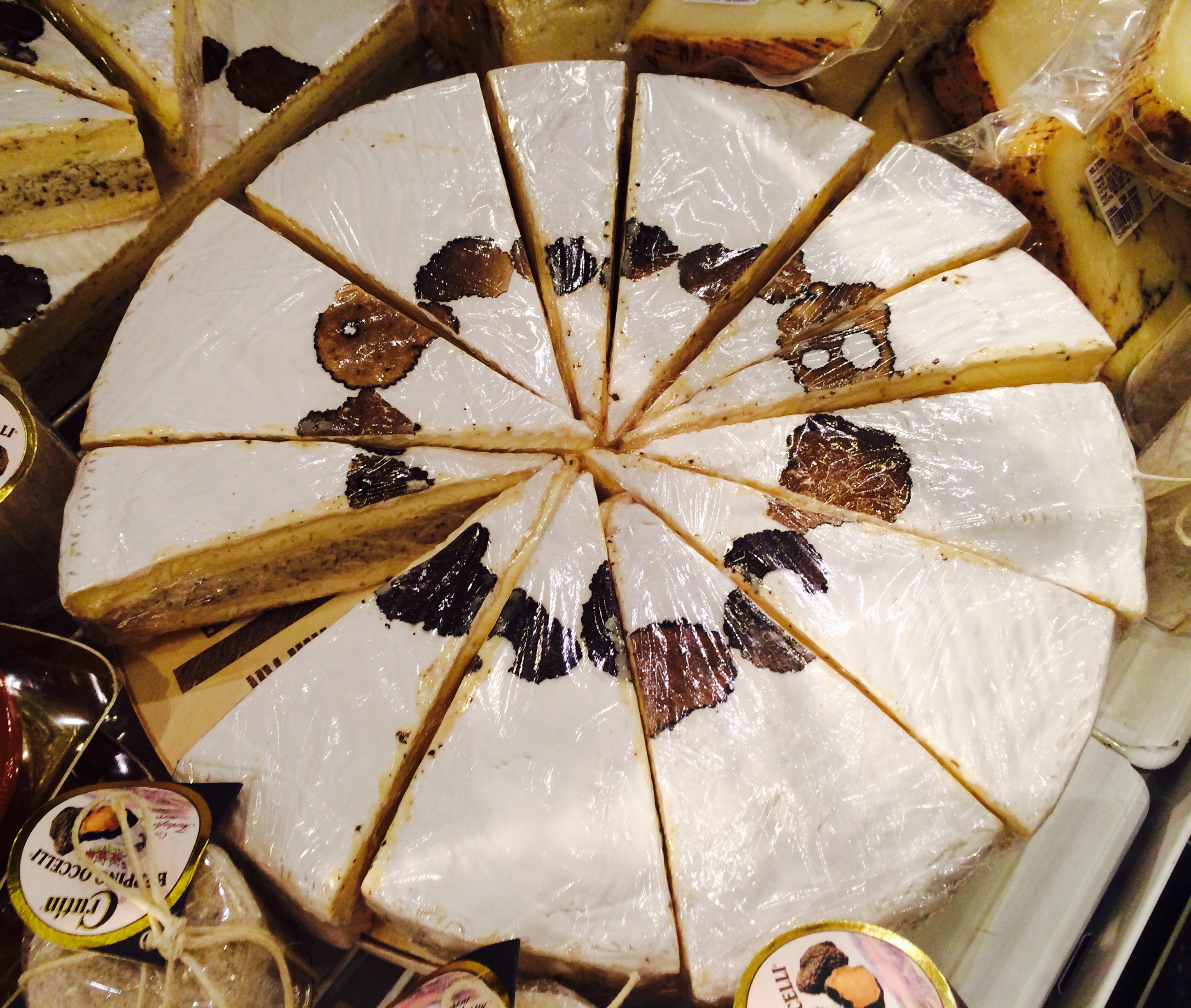 It wasn’t until I hit London in December that I could finally buy a wedge, filled with a layer of rich truffle cream. In fact I believe Neven and I ate the whole wedge before we left the store (well the store was Harvey Nichols and they encourage that sort of thing). Often truffle oil (which contains no real truffle) is passed off in dishes as the real thing but you can’t lie with cheese – it’s easy to see the flecks of real truffle and know you’ve bagged a winner.