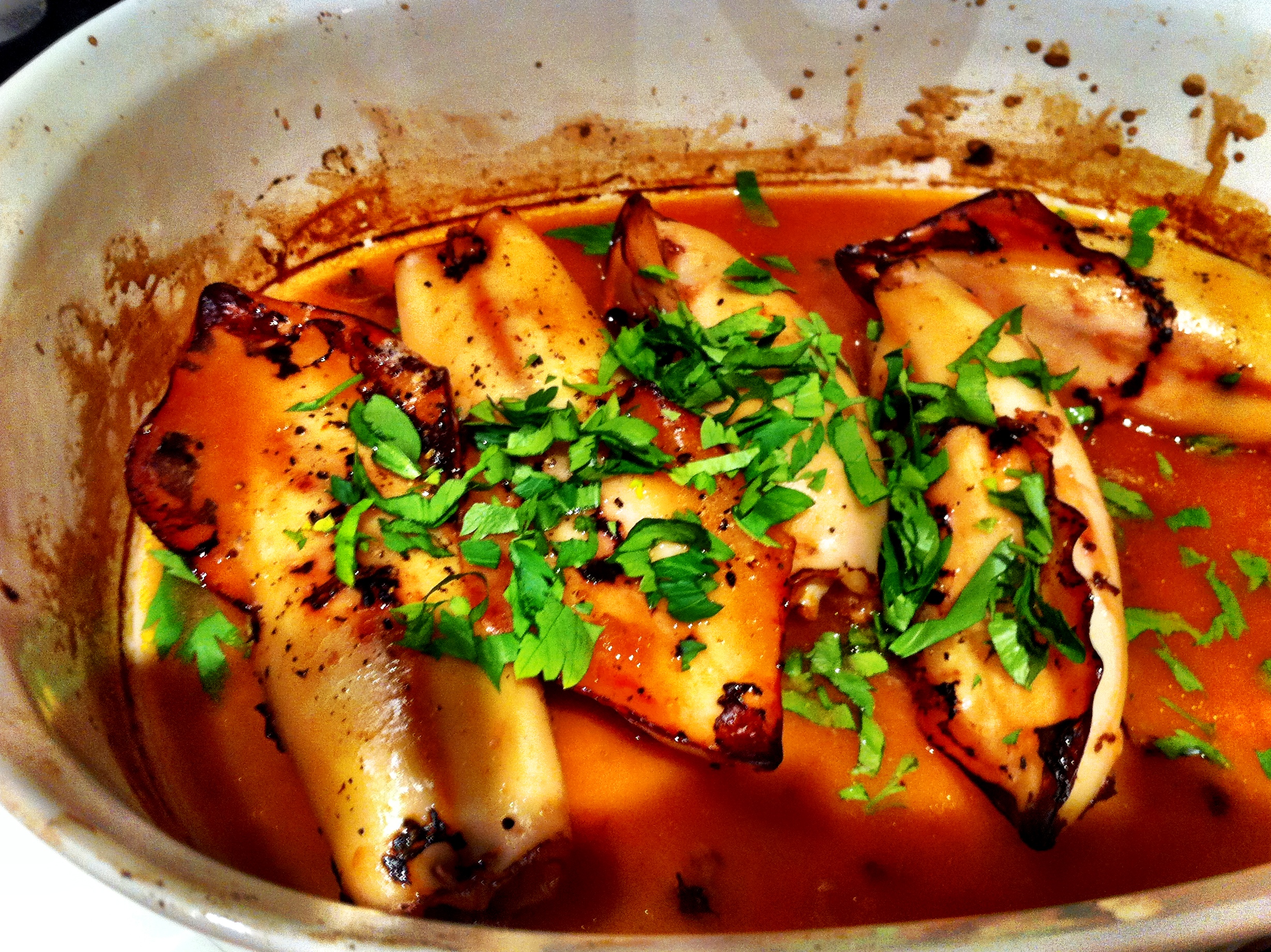 Calamaria yemista literally means stuffed squid. The stuffing is a mix of rice, finely chopped vegetables, white wine and herbs which is spooned into squid hoods and baked. Makes for a delicious mezze at any time of the year.