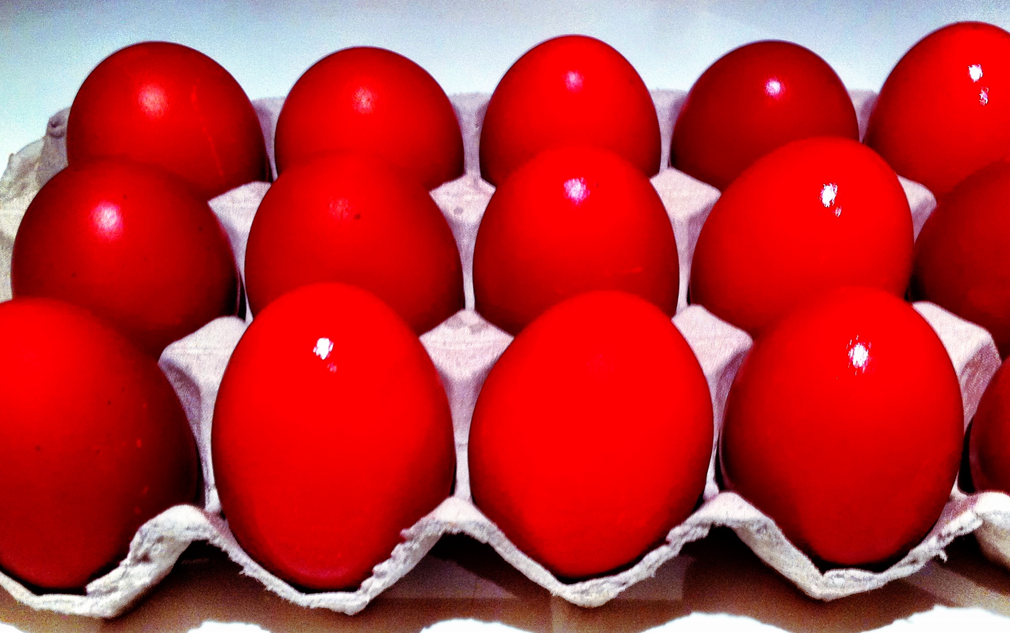 Don’t laugh, but to me, red eggs are undoubtedly the highlight of Greek Easter. We don’t just dye them and eat them – we crack those babies enthusiastically one-to-one, end-to-end, until only one person has an unblemished side remaining. That person is the winner! I’ve never quite got my head around what they actually win but it is certainly a source of pride for the lucky soul.