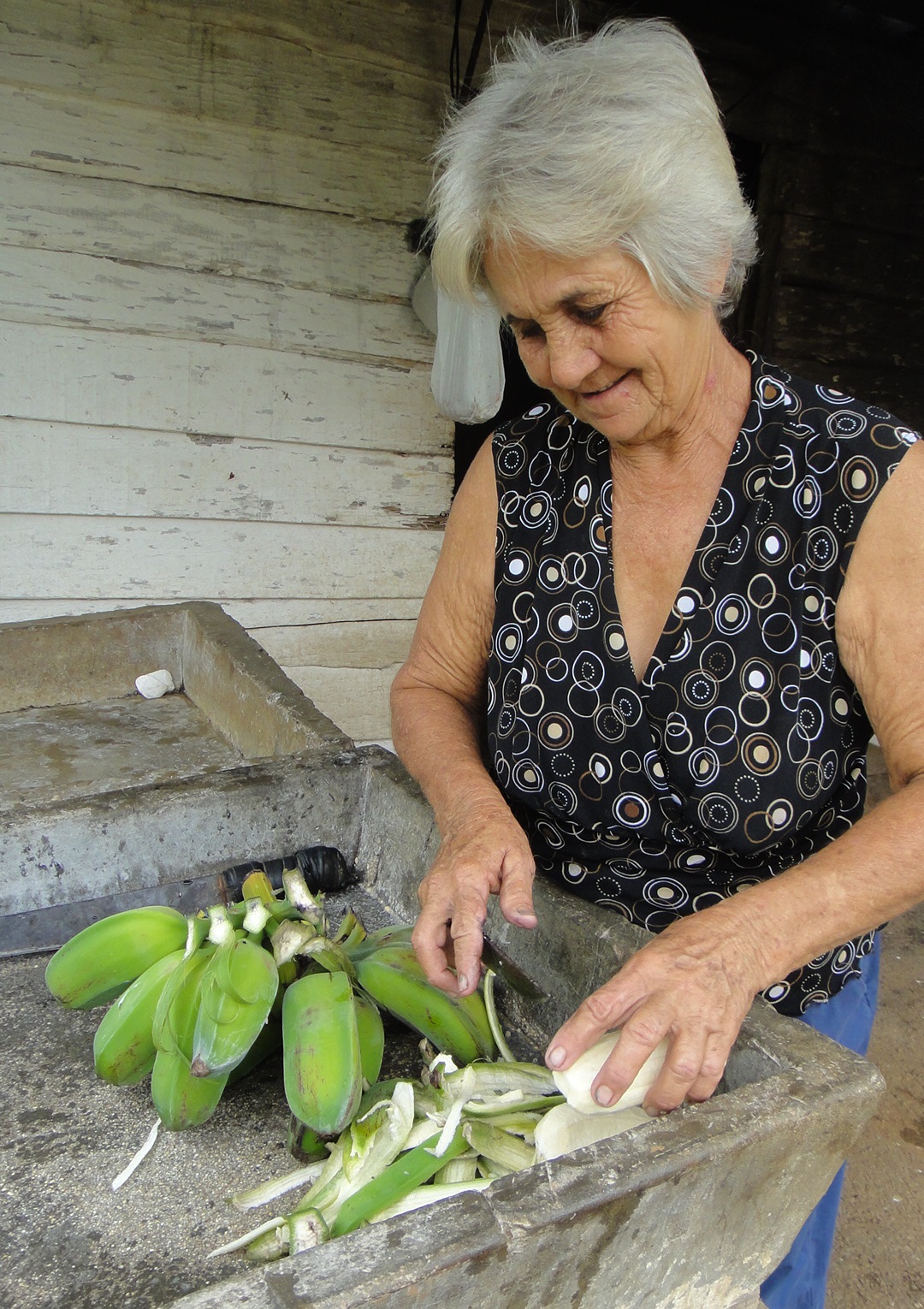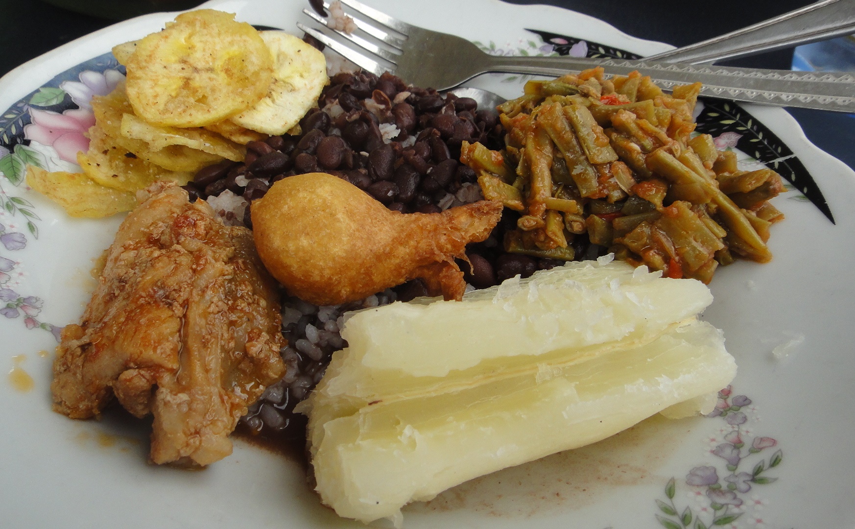 One of my favourite meals was enjoyed halfway through an intense day of cycling through Pinar del Rio. We stopped to visit Louisa at her rustic farm which included tobacco drying fields. The meal and its presentation typified Cuba – rice and beans, corn soup, braised pork in spices, green beans (reminiscent of Greek fasolia), yuca (the root vegetable also known as cassava), plantain chips and fried dough balls.