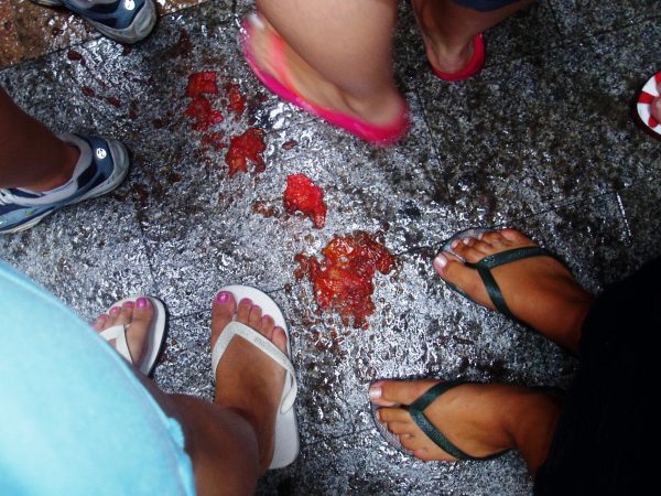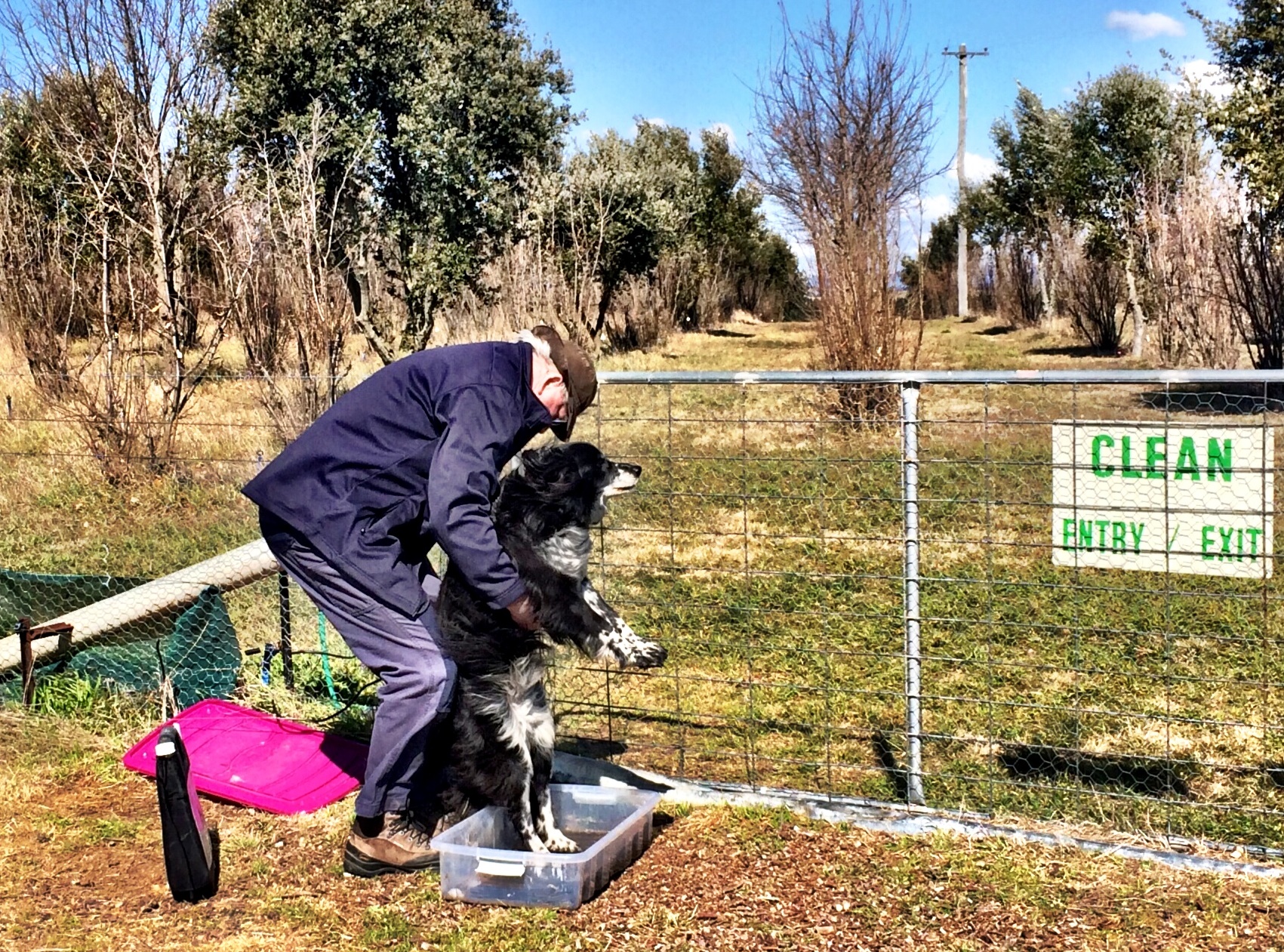 First step is to bathe your feet in chlorine to keep germs out of the paddock and prevent cross-contamination. Even the dogs have to quickly dip their paws in.