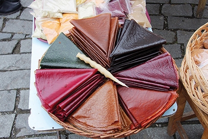 Strange looking food excites me. The more alien it looks, the more I want to try it. Thus I was stopped in my tracks at the local markets when I spotted these bumpy colourful strands which were so waxy they could have been candles. On the contrary, these are a signature Georgian sweet comprising of a string of walnuts covered in concentrated grape juice. A time consuming but ingenious way of using up grape juice left over from harvest. I never really found out the correct way to eat these, and ended up just biting off chunks and pulling them off the string with my teeth. Messy but tasty!