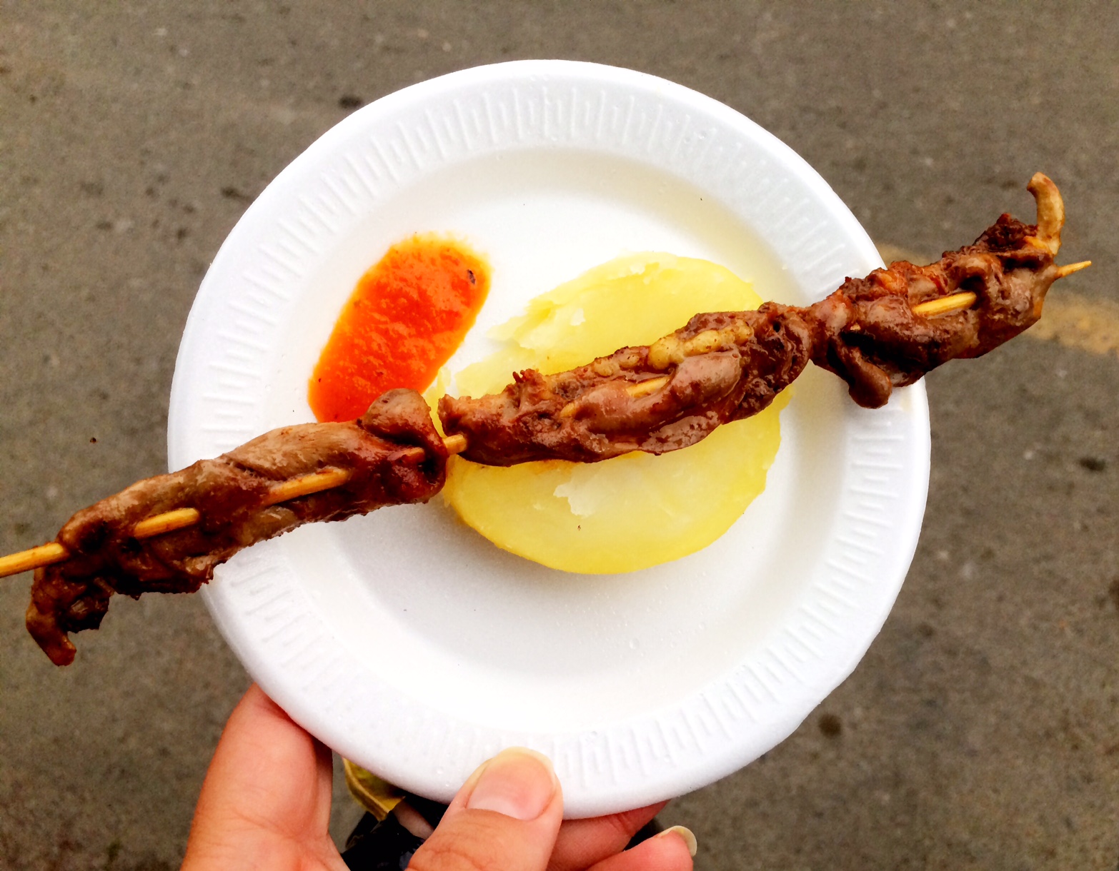 There is no longer any street food in central Lima. The chaos and clutter of the stalls was pushed out years ago to clean up the area for tourists. You can find anticuchos and arroz con leche on various restaurant menus but it’s a more refined (and expensive) version.