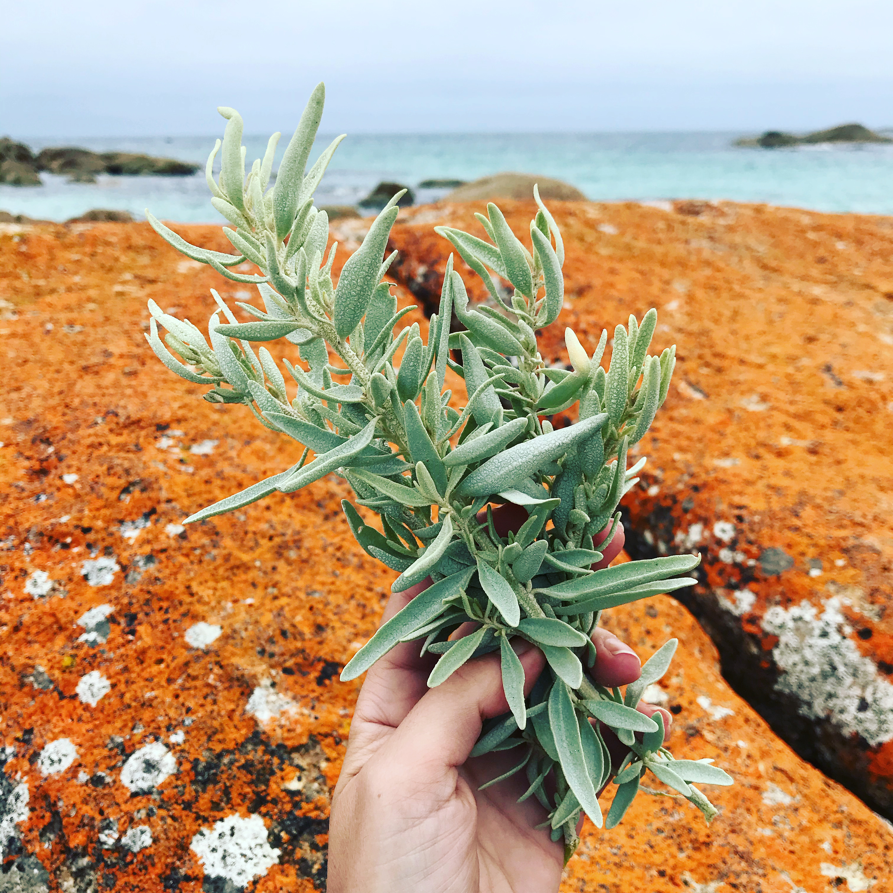 I am (sadly) no bush tucker woman. But thanks to my regular trips to Margaret River and a few lessons in foraging by Peter Kuruvita, I have come to recognise saltbush when I see it. And I saw lots of it along the stunning beaches of the Bay of Fires. My hiking pals thought I was mad when I started grabbing leaves and chewing them energetically. Coastal saltbush grows on beaches and around salt lakes all over Australia but sadly I’ve never seen it on the NSW coast (although it pops up on menus here and there – like the Archie Rose distillery who use a sprig of saltbush as a garnish for their martinis). There is something very liberating about eating the natural ingredients around you (and not being poisoned).