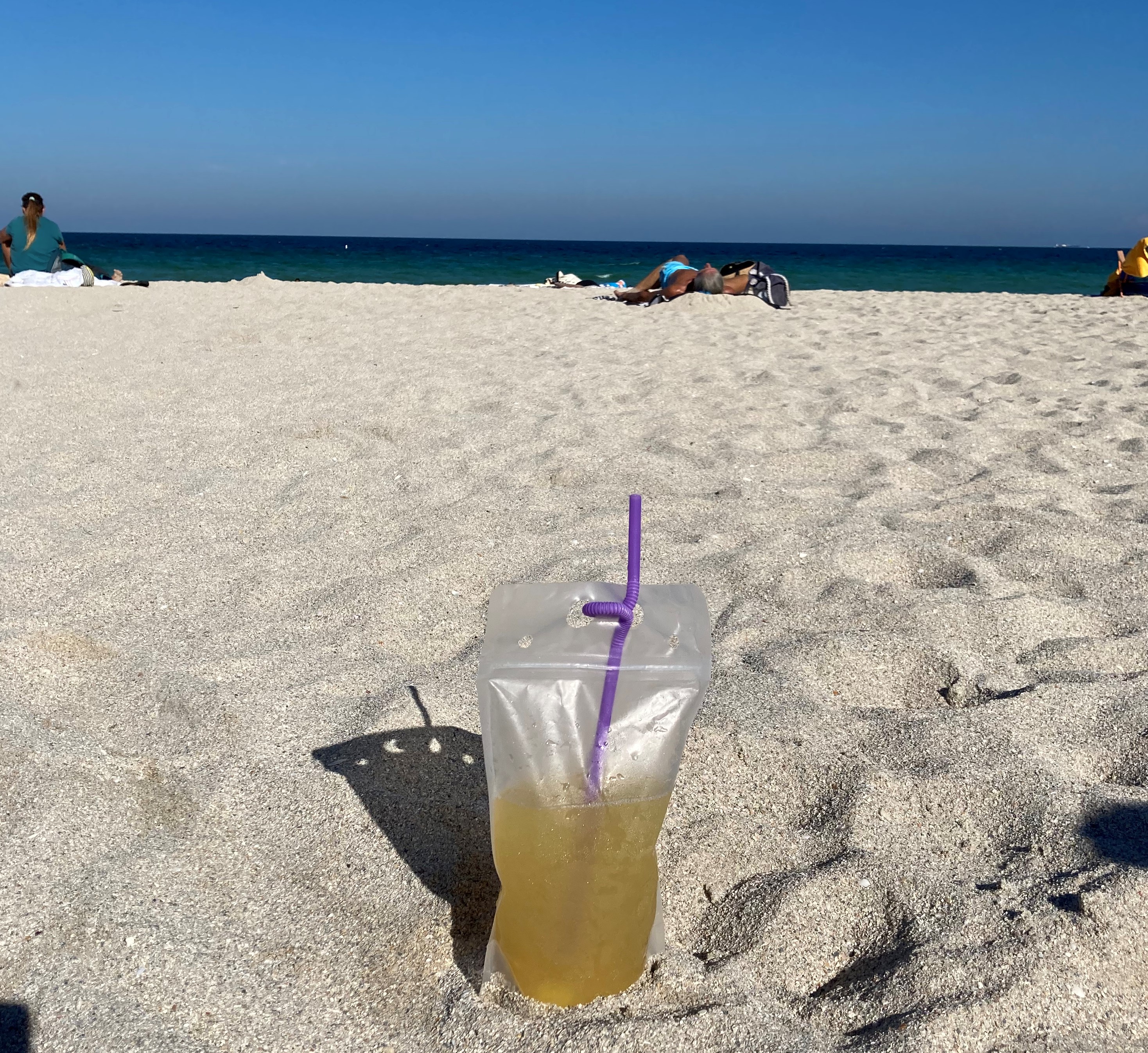 There is of course, one other way to drink cocktails in Miami and that is illegally on the beach through a plastic pouch. The Latin tradition of mobile beach cocktail service is sadly not permitted in Miami but it doesn’t stop enterprising young off-season hospitality staff from making their own cocktails at home and selling them on the sly from cooler bags on their back. They are so subtle that you can barely hear them whisper ‘piña colada, margarita….’ as they stroll down South Beach. Once I cottoned onto the ruse I realised they were everywhere. And I wanted IN!