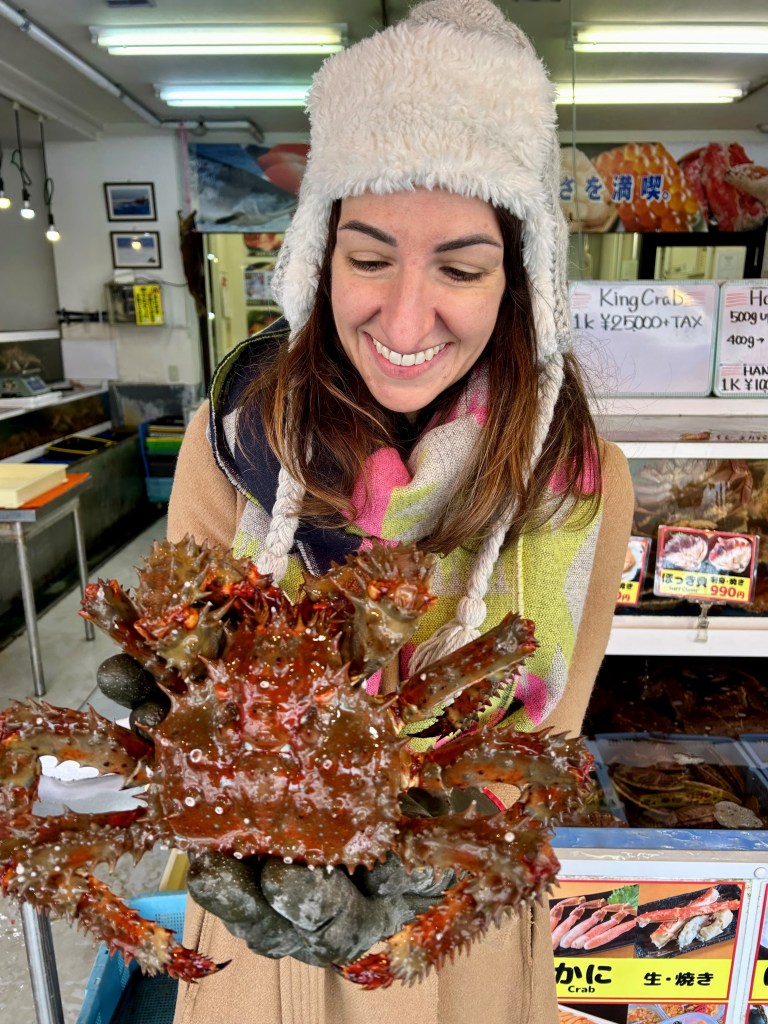 Wander around the average fish market and you’ll spot live crabs desperately struggling to escape from their capture. Japanese fish markets are not average however and neither are their crabs. January is the height of crab season in Hokkaido and you couldn’t miss the giant Alaskan, King and hairy crabs lining the stalls of every seafood market.