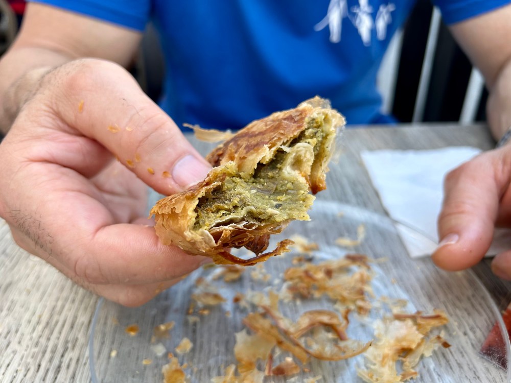 The ovens run hot, so you’re always guaranteed a fresh pastry. That means pastry that shatters upon each bite with tiny shards of crisp pastry exploding from your mouth and sharp salty fillings that ooze out. It’s hard to go past the classic cheese (which is more than a little similar to Greece’s tiropita) but I did enjoy the anchovy more than I thought I would and the pea was also delightful.