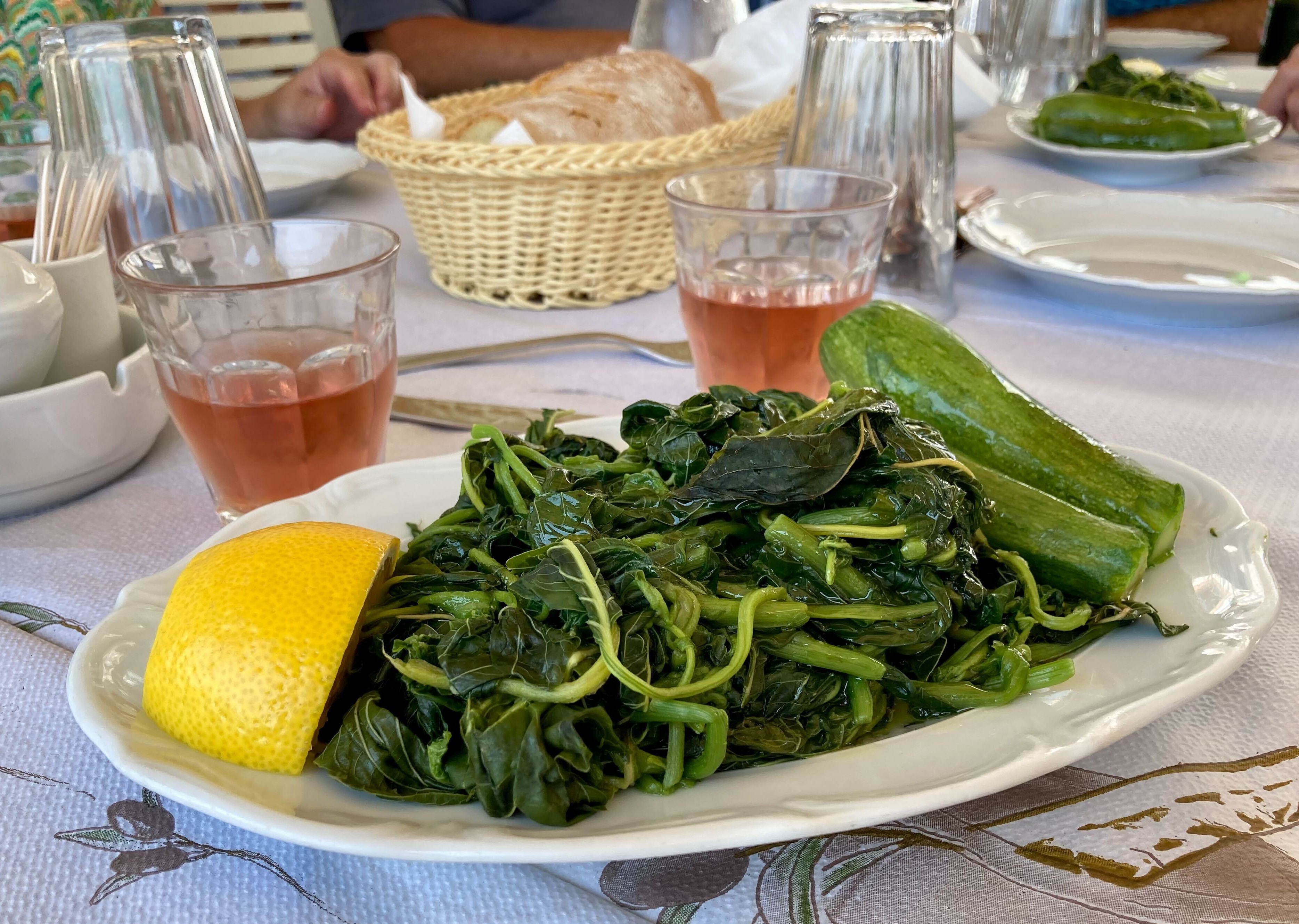 The other main source of subsistence was horta, or wild greens, which I have written about before in an effort to explain why Greeks love weeds. Not a single meal on my recent trip passed without a bowl of vlita on the table with lemon and olive oil.