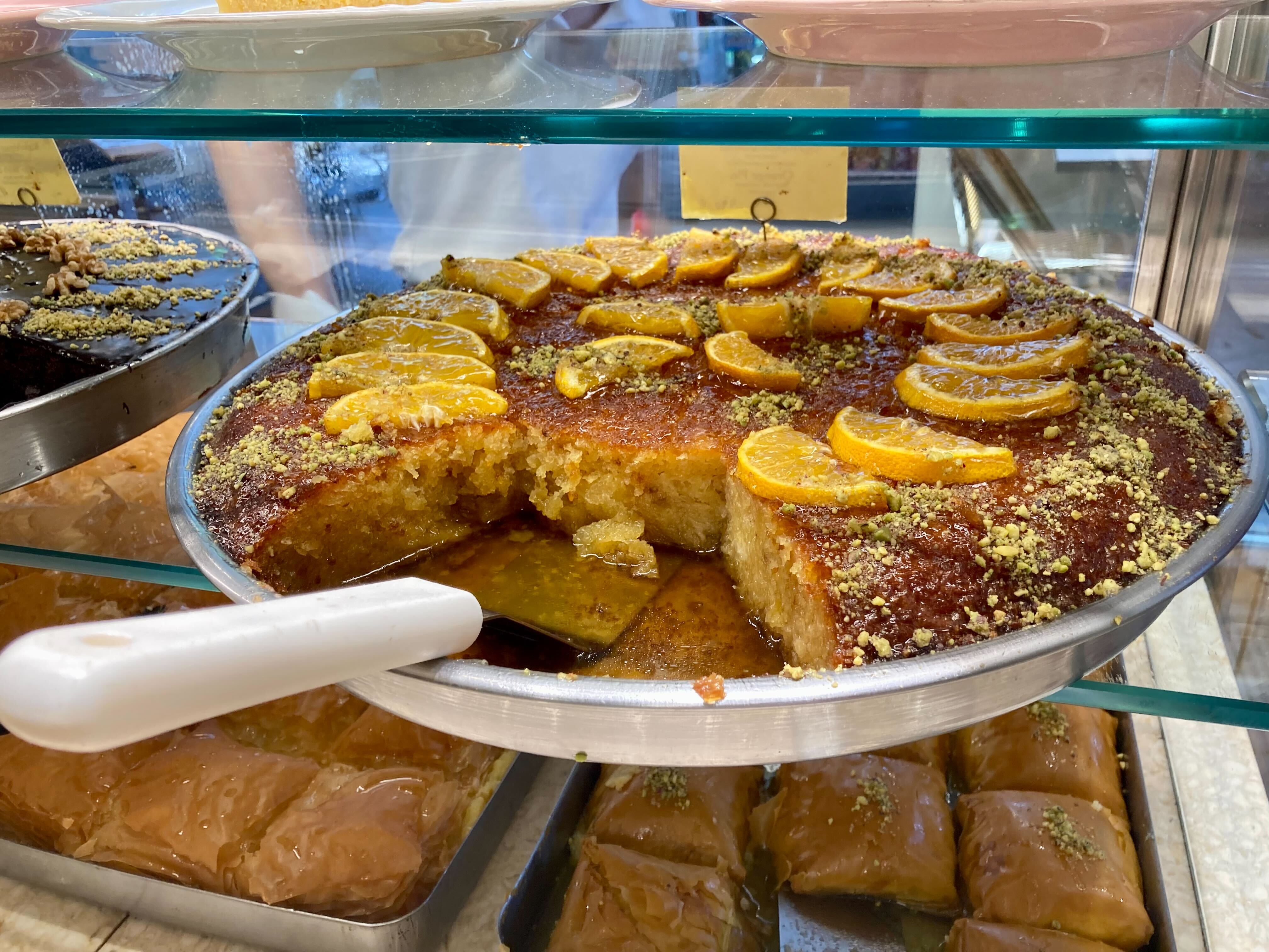 The cocky foodie in me thought I had Greek sweets down pat. I’ve been known to eat galaktoboureko for breakfast and will move heaven and earth to track down the best bougatsa in town. I didn’t expect to unearth a new (for me) sweet and was delighted when I did. It was mum who put portokalopita on my radar and we ate our way through copious amounts while on the island. It’s made from phyllo drenched in orange syrup and I am now officially obsessed. No Greek cake shop in Sydney seems to make it (why, why?!!) so I will have to turn my hand to it instead.